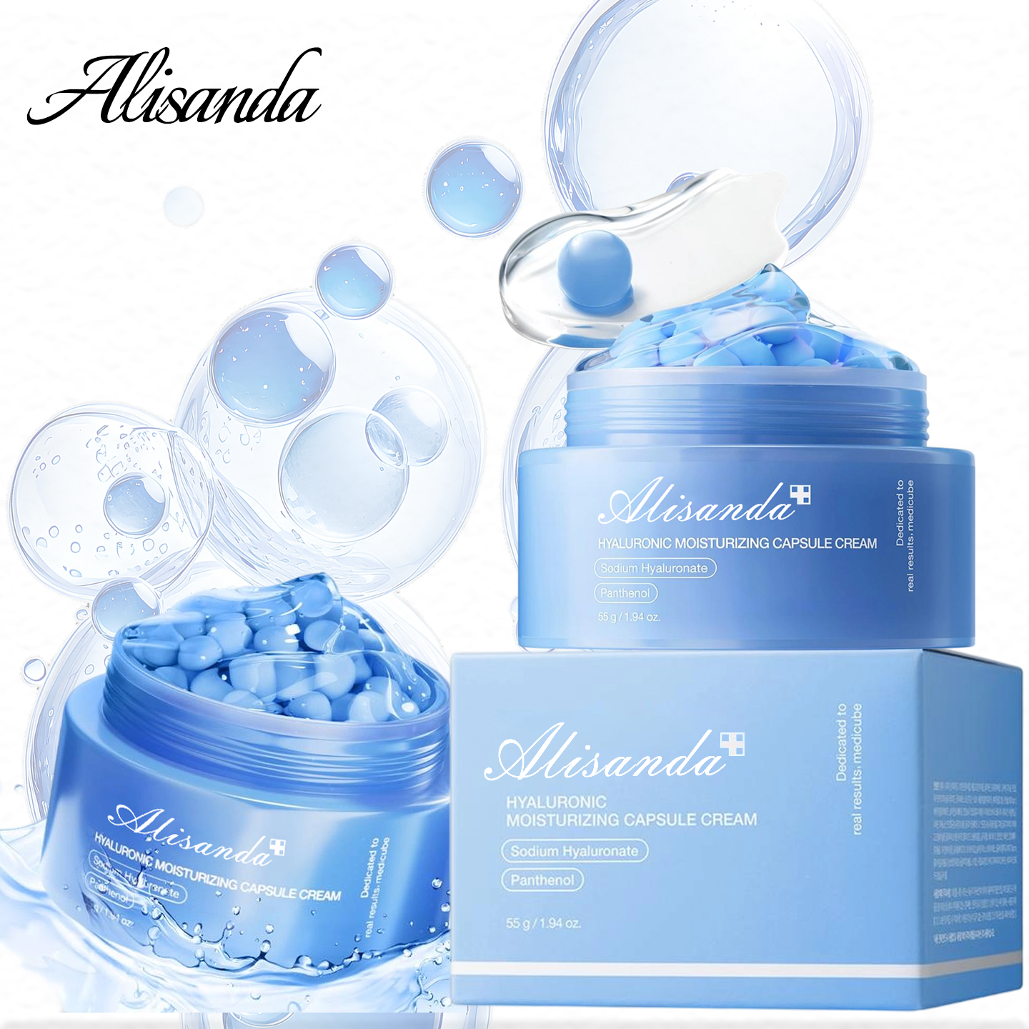💙 Hyaluronic Moisture Capsule Cream – Infused with Panthenol & Betaine to balance moisture and calm redness.