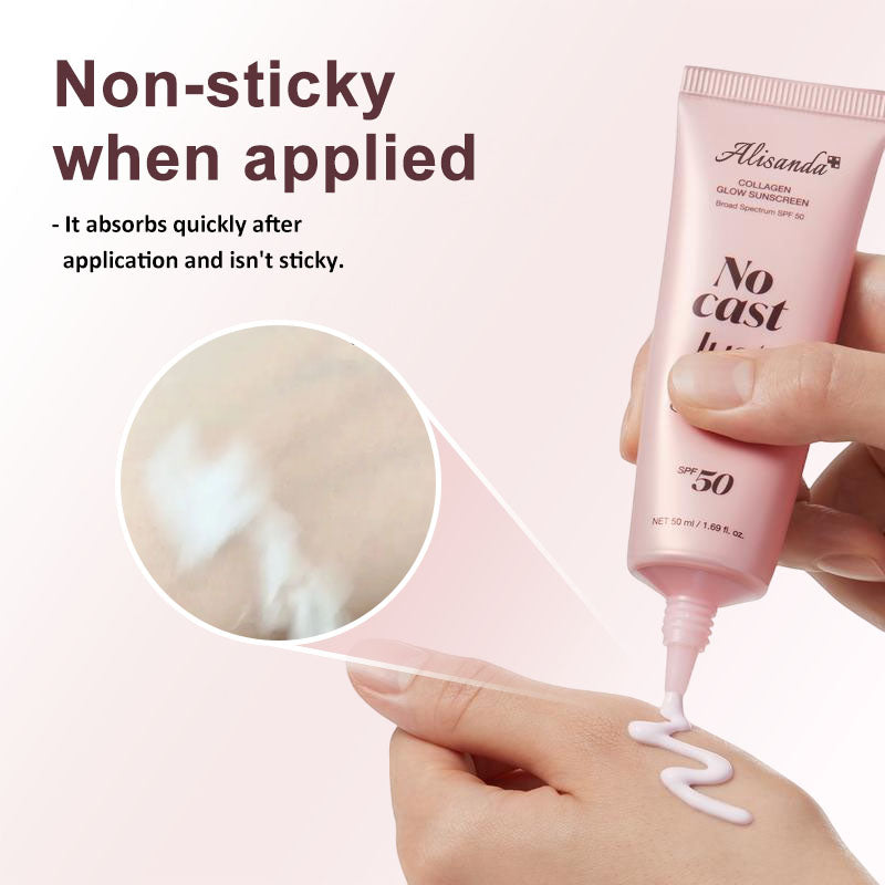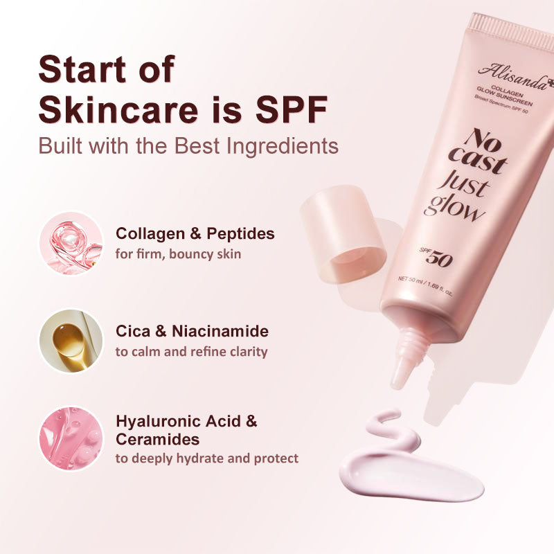 Apply a generous amount of the No Cast Just Glow Collagen Sunscreen to your face as the final step in your skincare routine. Gently massage it into your skin until fully absorbed. Reapply every 2 hours if you’re spending extended time outdoors or after swimming.