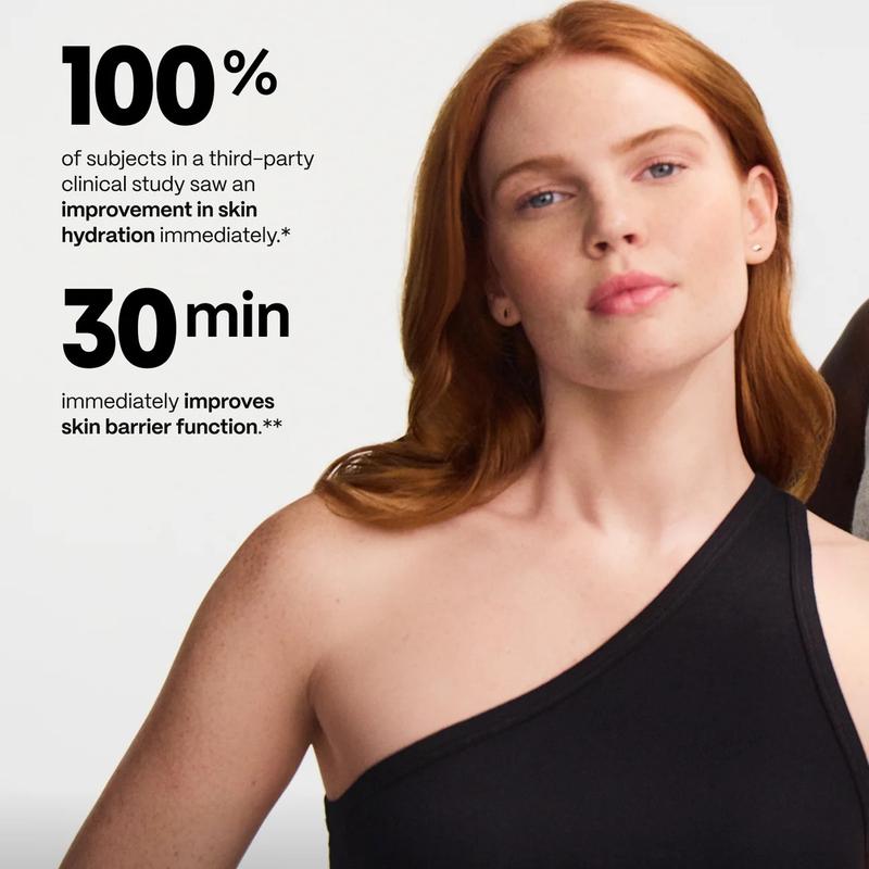 Provides temporary repair to skin’s moisture barrier function in 30 minutes based on third-party instrumental transepidermal water loss test of 32 subjects.
